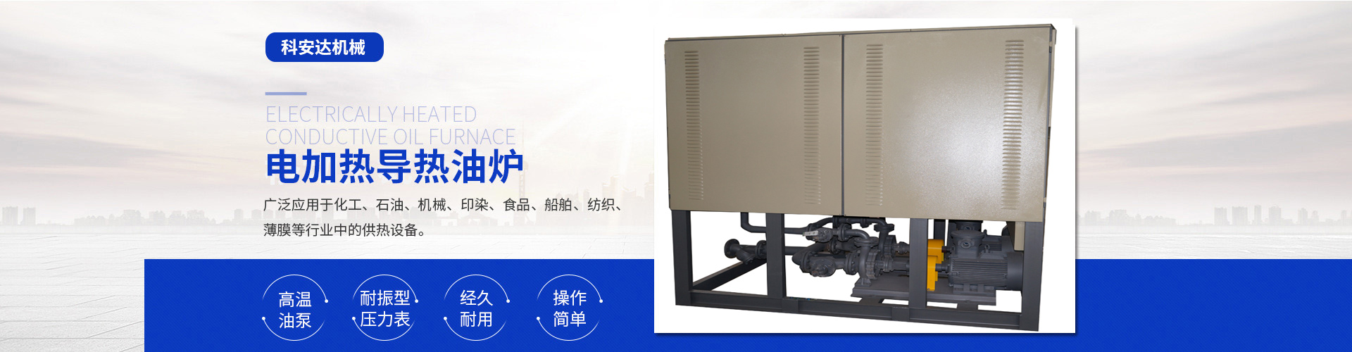 近年來(lái)我公司在延用自己的技術(shù)基礎(chǔ)上不斷引進(jìn)先進(jìn)技術(shù)與管理經(jīng)驗(yàn),專(zhuān)業(yè)研發(fā)制造電加熱導(dǎo)熱油爐(有機(jī)熱載體爐)、電磁感應(yīng)加熱器、電加熱爐、熱風(fēng)循環(huán)箱式預(yù)熱爐、風(fēng)道加熱器、空氣加熱罐、電加熱管、高溫電阻爐、保溫烘箱、烘道、鑄鋁鑄銅加熱器、防爆加熱器、遠(yuǎn)紅外加熱管、埋入式遠(yuǎn)紅外陶瓷加熱瓦、陶瓷加熱圈、不銹鋼云母電熱圈、碳化硅遠(yuǎn)紅外電加熱板、電熱帶 、真空清洗爐、三甘醇清洗爐等。產(chǎn)品適用于化纖、紡織、皮革、塑料機(jī)械、電纜機(jī)械、食品機(jī)械、橡膠機(jī)械、冶金、石油、化工、電子、醫(yī)療、海洋工程、家用電器等行業(yè)。同時(shí)可根據(jù)客戶(hù)使用與現(xiàn)場(chǎng)安裝的需要,設(shè)計(jì)、制造特殊規(guī)格的上述設(shè)備,企業(yè)以其先進(jìn)技術(shù)、合理的價(jià)格,周道的服務(wù)使產(chǎn)品遠(yuǎn)銷(xiāo)國(guó)內(nèi)外。